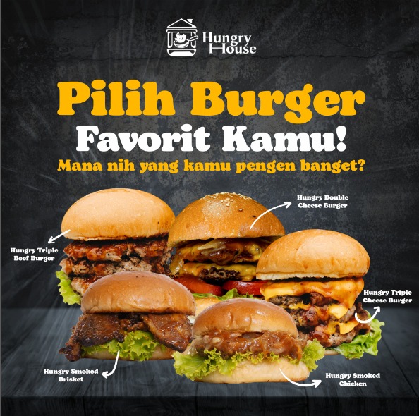 🍔 Pesan sekarang & nikmati sensasi burger premium dengan daging melimpah dan secret sauce khas Hungry House!